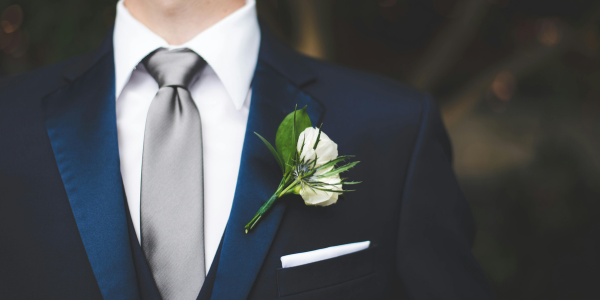 Si tu boda exige etiqueta rigurosa, el esmoquin es la mejor opción. Es un traje en tonos oscuros compuesto por una chaqueta sofisticada con solapas de satén, pantalón sin pinzas, camisa de cuello alto combinada con chaleco o fajín. Entre los accesorios destaca el uso de gemelos, pajarita o corbata y pañuelo en la bolsa del saco.